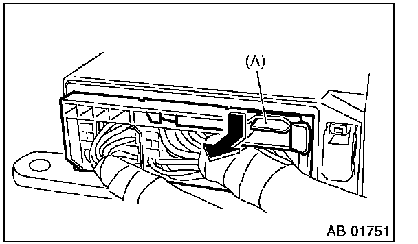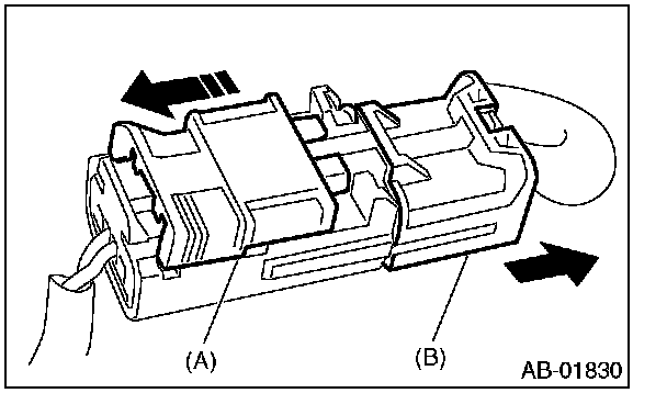2. While holding the slide lock (A), pull the connector (B) in the direction of arrow.