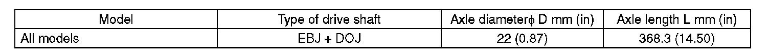Rear Drive Shaft Dimensions