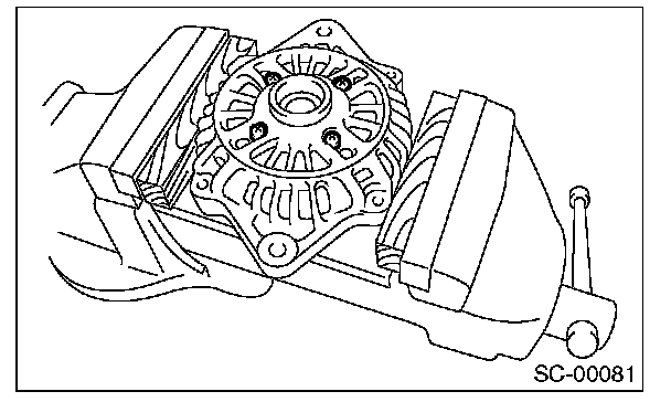 CAUTION: When holding the rotor with a vise, place aluminum plates or wooden pieces on the vise jaws to prevent rotor from damage.