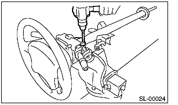 3. Secure the steering column in a vise. Remove the bolt with a drill.
