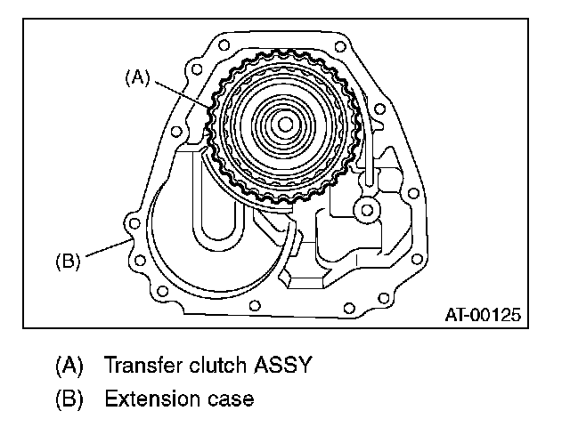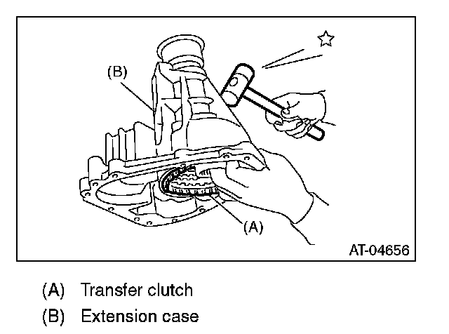 1) Hit the extension case lightly with a plastic hammer, and take out the transfer clutch.
