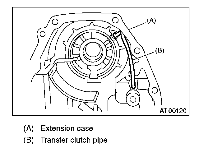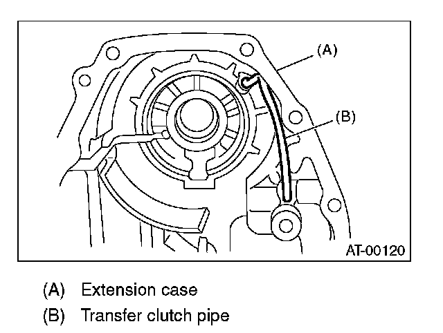 3) Install the transfer clutch pipe to the extension case while being careful not to deform the pipe.