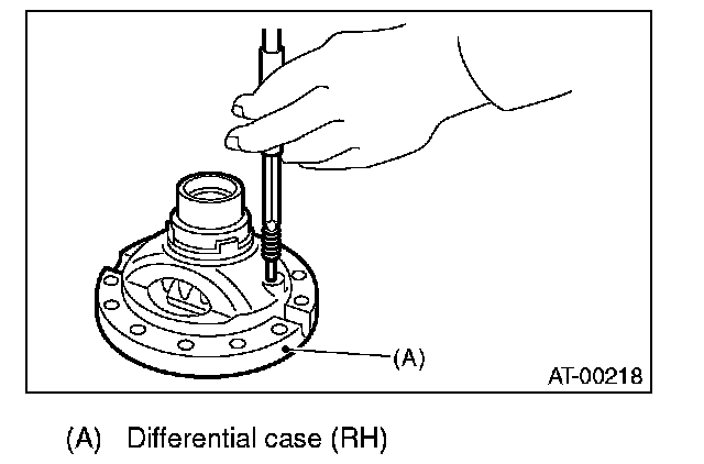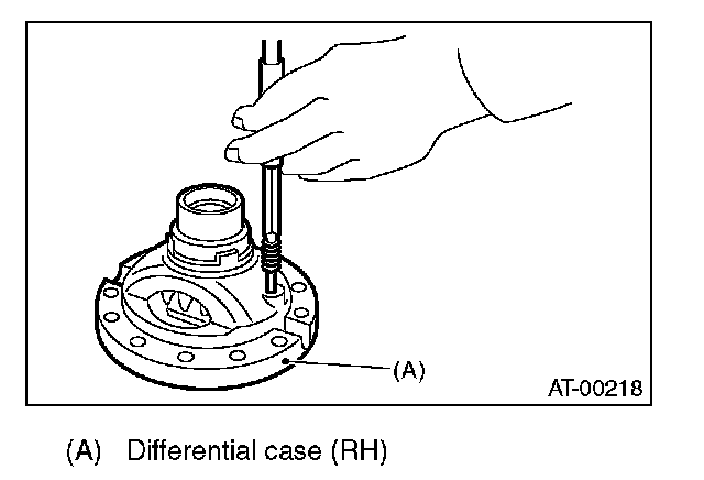 1) Install the washer, differential bevel gear and differential bevel pinion in the differential case (RH). Insert the pinion shaft.