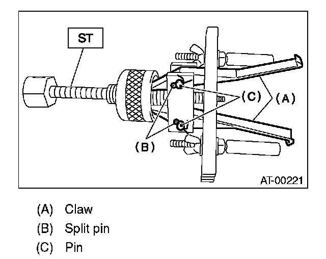 6) Hold the shaft of ST to avoid detachment from the differential side retainer, and remove the bearing outer race.