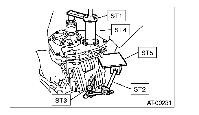 5) Rotate the drive pinion a few times using ST1 and ST2.