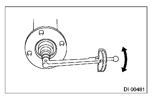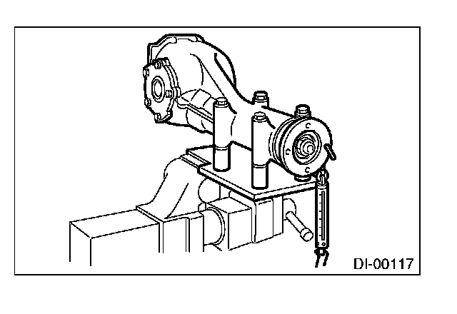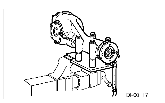 7) At the same time, measure the total preload of the drive pinion. Compared with the resistance when differential case is not installed, if the total preload is not within specification, adjust the thickness of side retainer shims, increasing/reducing both shims by an even amount at a time.