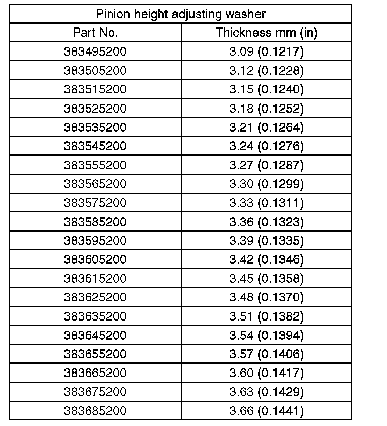 3) Obtain the thickness of pinion height adjusting washer to be inserted from the following formula, and replace the temporarily installed washer with this one.