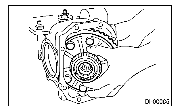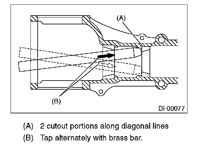 18) When replacing the bearings, use a brass bar to tap out the front bearing cup and rear bearing cup (in this order).