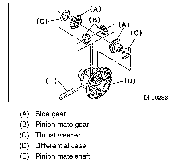 11) Draw out the pinion mate shaft and remove pinion mate gears, side gears and thrust washers.