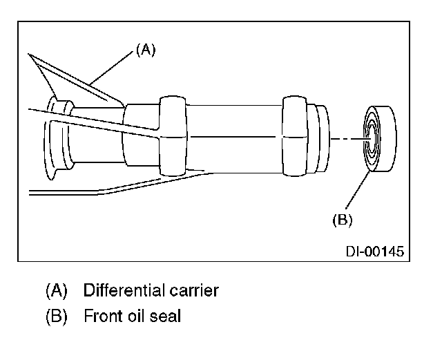 The lock pin is staked at the pin hole end on the differential carrier. Do not drive it out forcibly before removing the stake.