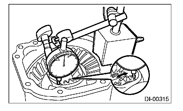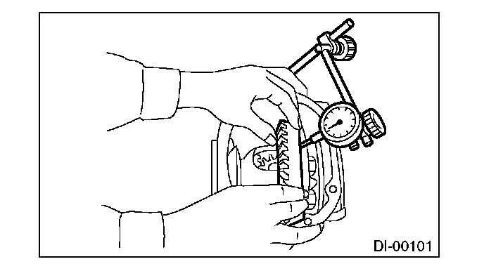 Using a dial gauge, check the backlash of side gear.