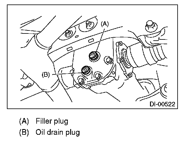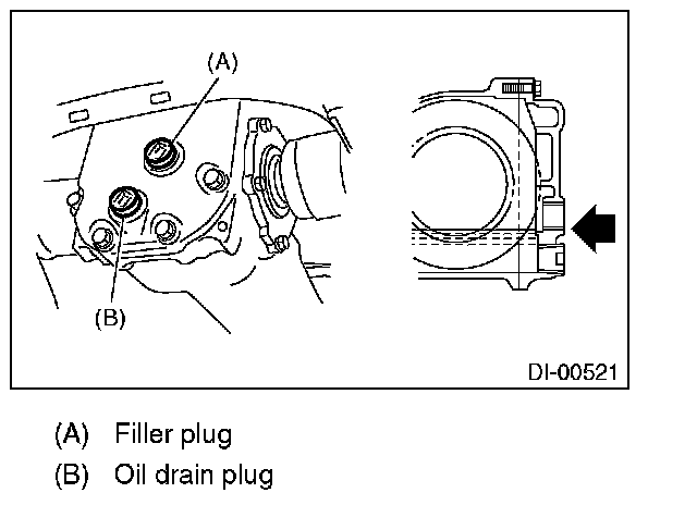 4) Fill the differential carrier with gear oil to the bottom of filler plug.