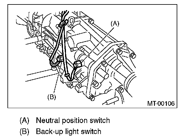 6) Remove the back-up light switch & neutral position switch with the harness.