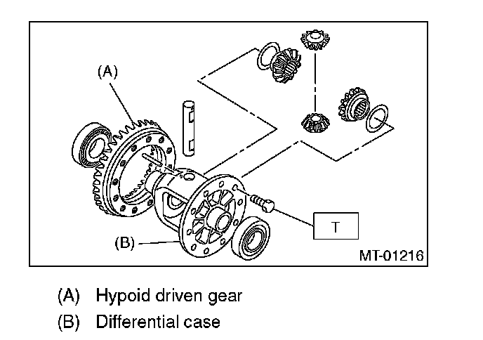 5) Install the hypoid driven gear to the differential case using twelve bolts.