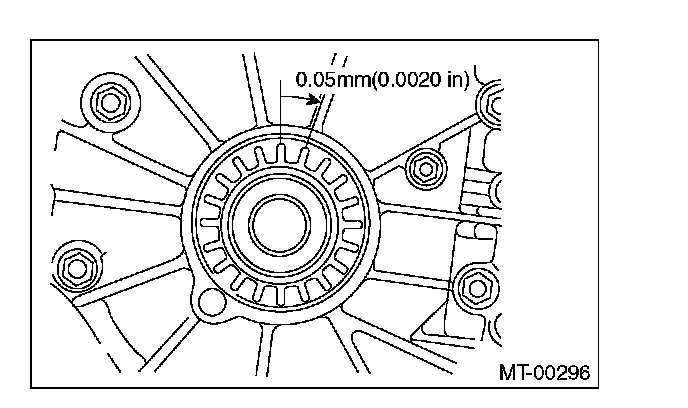 2) Measure the backlash between differential bevel gear and differential pinion. If backlash is not within specified value, install a suitable washer to adjust.