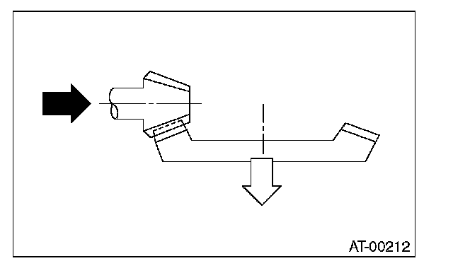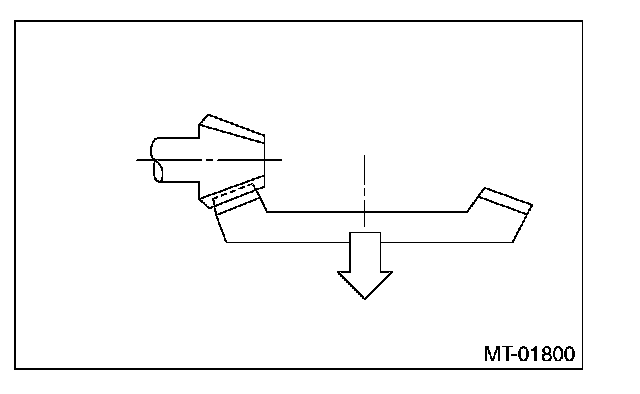 Corrective action: Increase the thickness of drive pinion shim and tighten the side retainer to move the driven gear closer to the drive pinion shaft according to the procedure for bringing drive pinion shaft away from driven gear.
