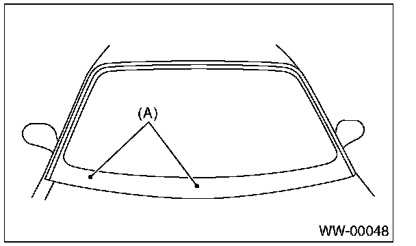 to ceramic print point mark (A) of front window panel.