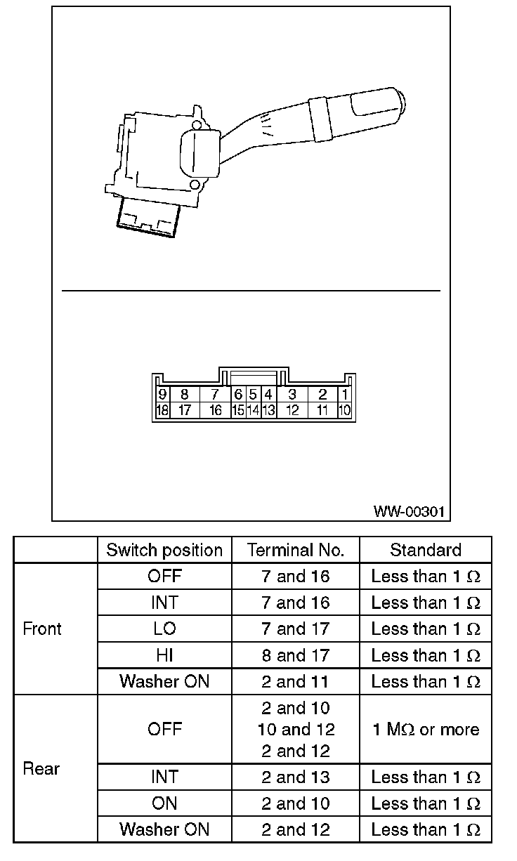 Wiper Switch: Testing and Inspection