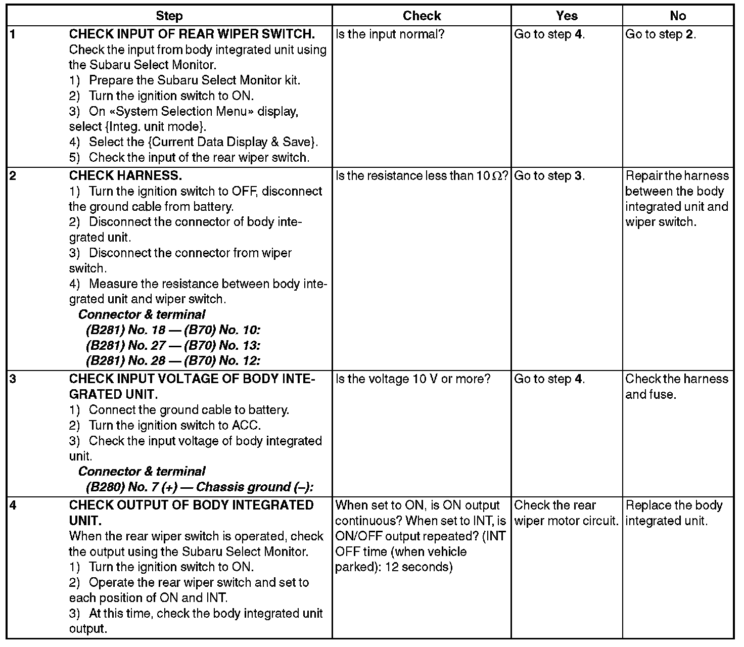 1. Check with Subaru Select Monitor When the front wiper switch is operated, check the input signal using the Subaru Select Monitor.