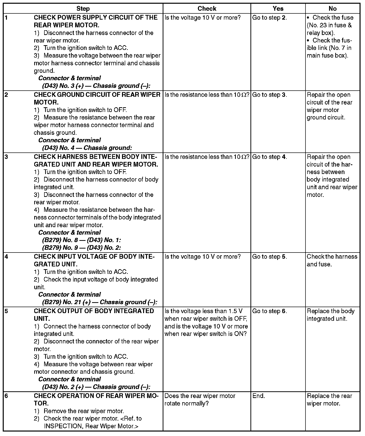 2. Check rear wiper motor circuit