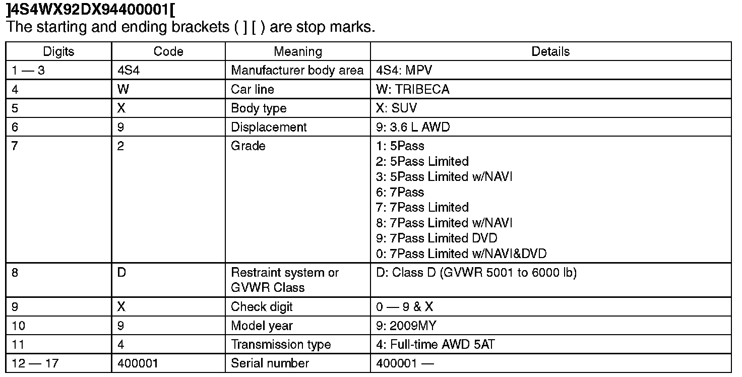 The model number label indicates the type, V.I.N., applied model, option code, trim code, engine type, transmission type and the exterior color code.