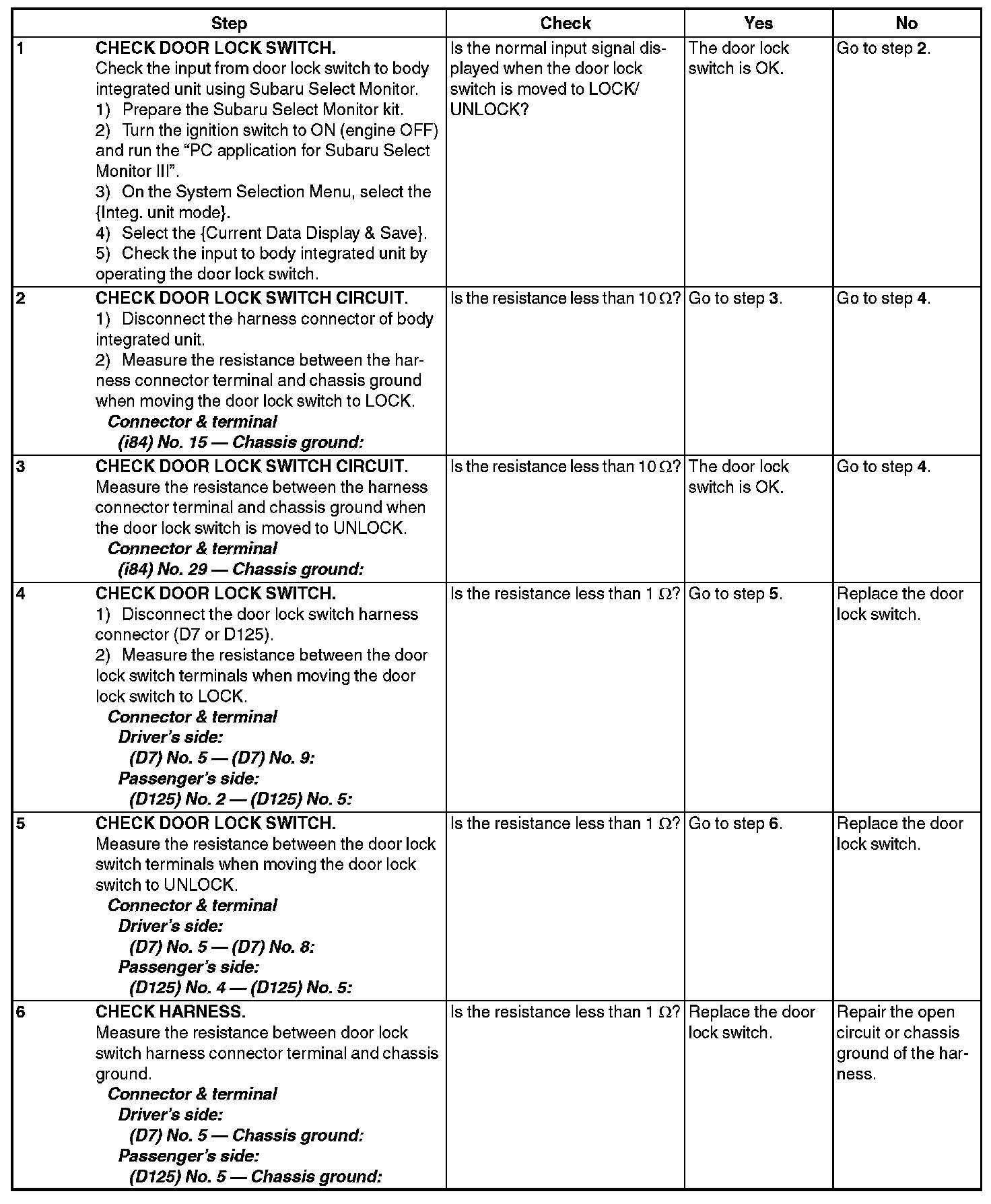 CHECK DOOR LOCK ACTUATOR & CIRCUIT