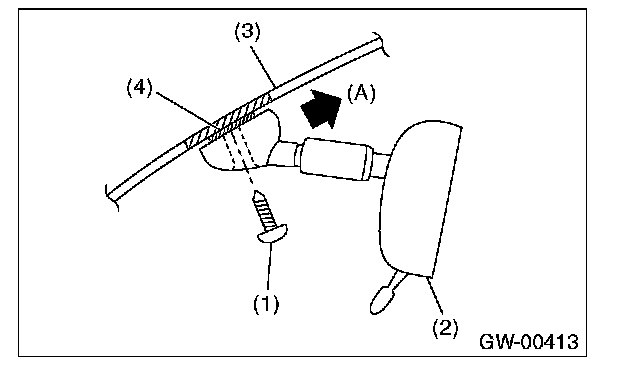 2. Slide the rearview mirror (2) to the upper side (A) of windshield glass (3), and remove the mirror from mount (4).