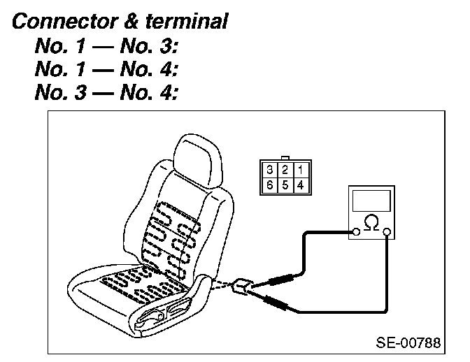 Disconnect the connector of the seat heater module, and check for continuity between terminals in connector.