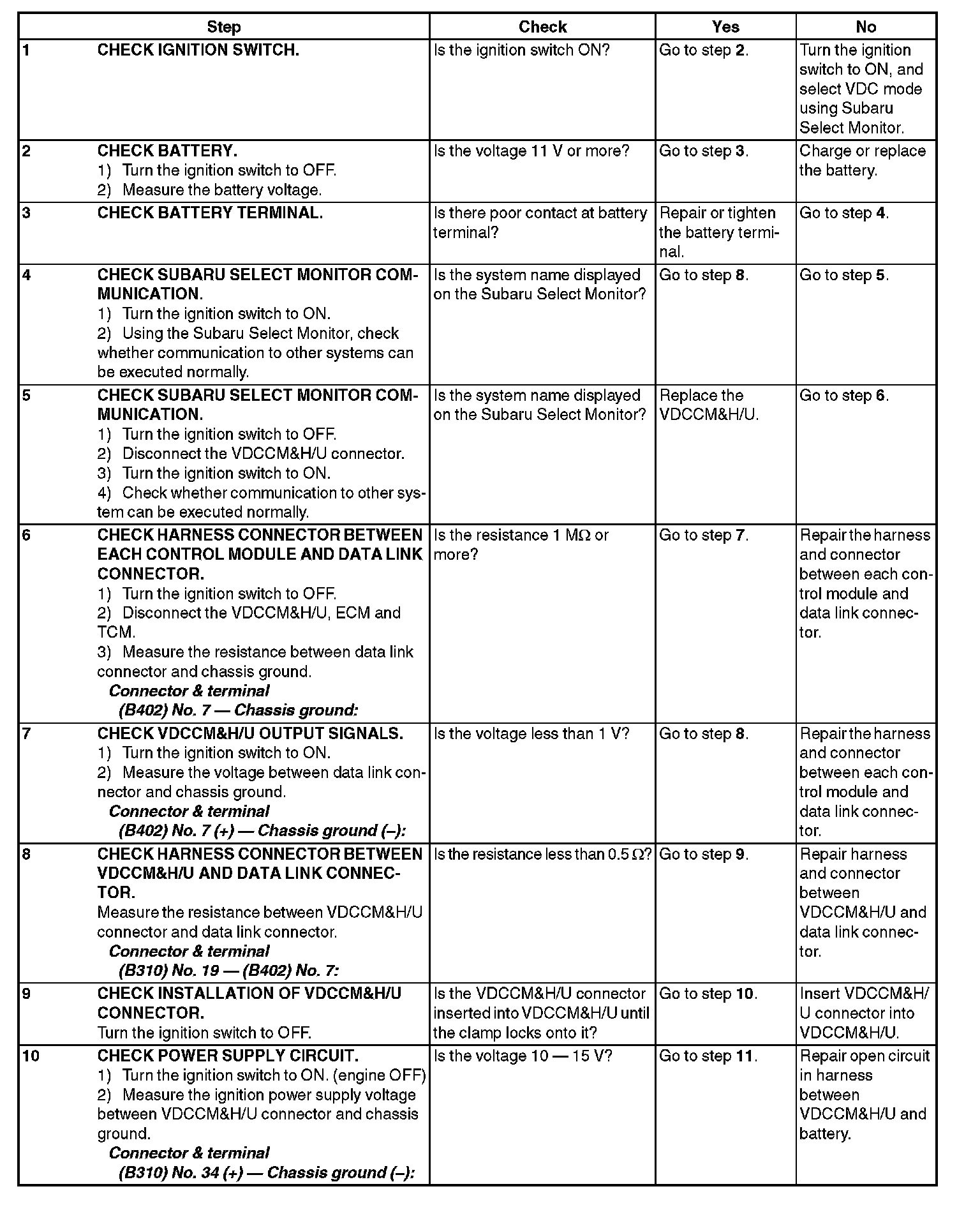 8) If VDC and Subaru Select Monitor cannot communicate, check the communication circuit.