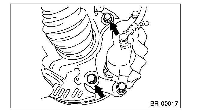 2) Remove the caliper body and the support from housing, and suspend it from the strut using a wire.