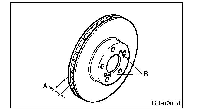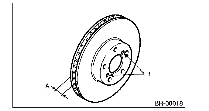 If it is difficult to remove the disc rotor from the hub, drive an 8 mm bolt into the threaded section (B) of the rotor, then remove the rotor.