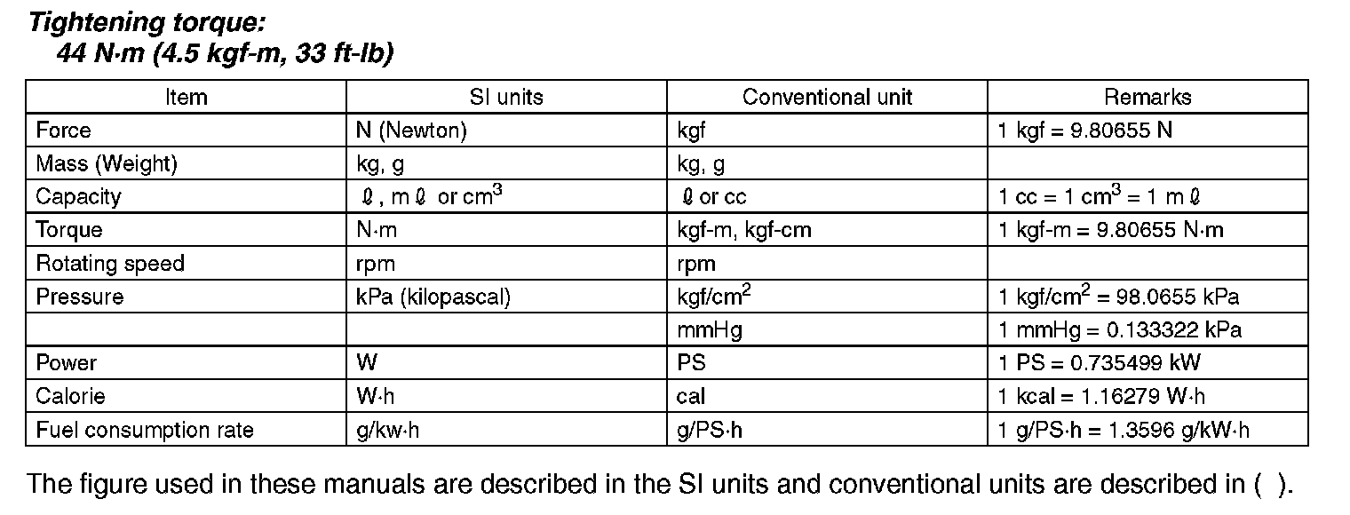 The figure used in these manuals are described in the SI units and conventional units are described in ( ).