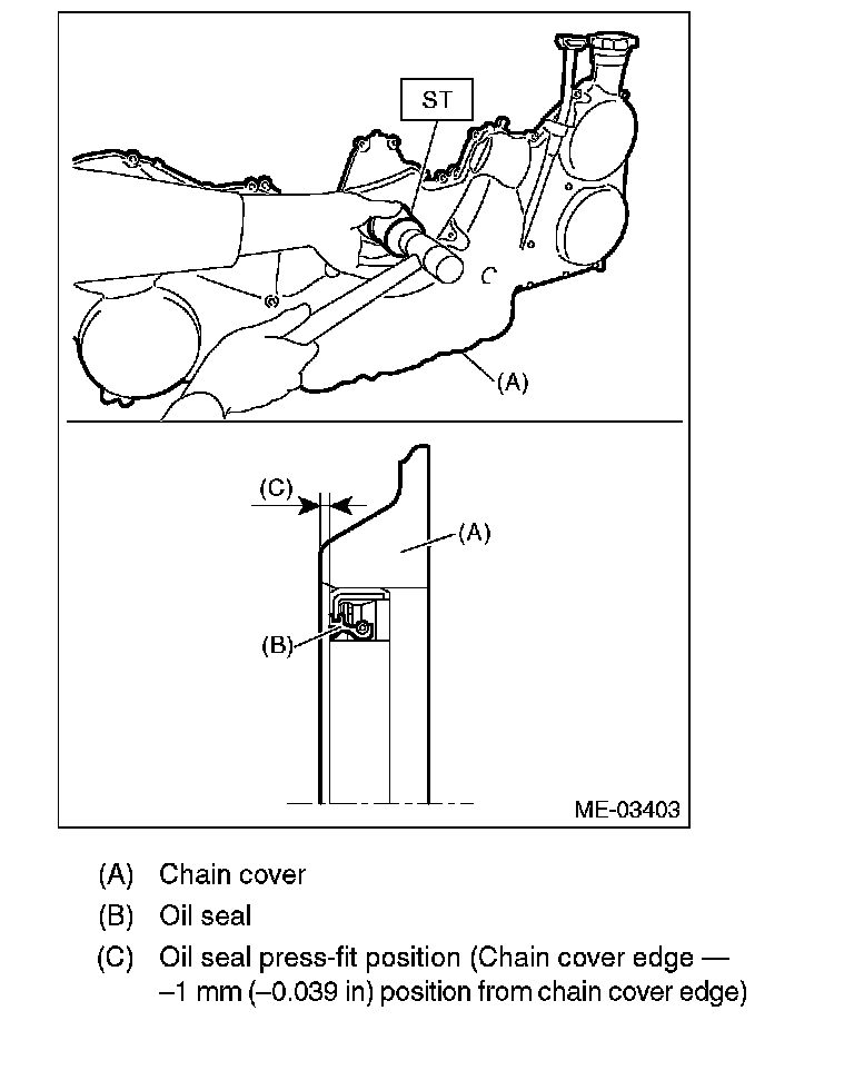 Chain cover edge - -1 mm (0.039 in) position from chain cover edge