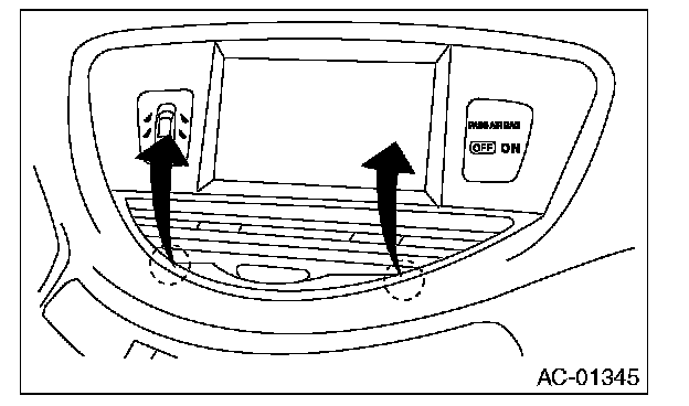 2. Lift the upper grille, and remove the catch on the hazard switch side.