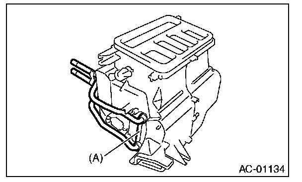 4. Remove the screws and remove the heater core cover and pipe clamp.