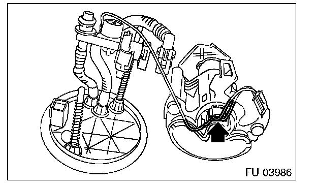 CAUTION: Be careful not to damage the ground line while disconnecting the sub tank bracket assembly and fuel filter assembly.