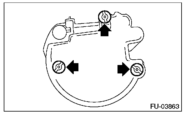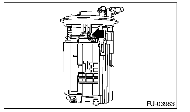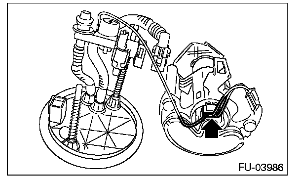 8. Lift the two claw holding portions where the pump assembly is connected to the fuel filter using a flat tip screwdriver [dia. approx. 3 mm (0.12 in)] to disconnect the fuel filter and pump assembly.