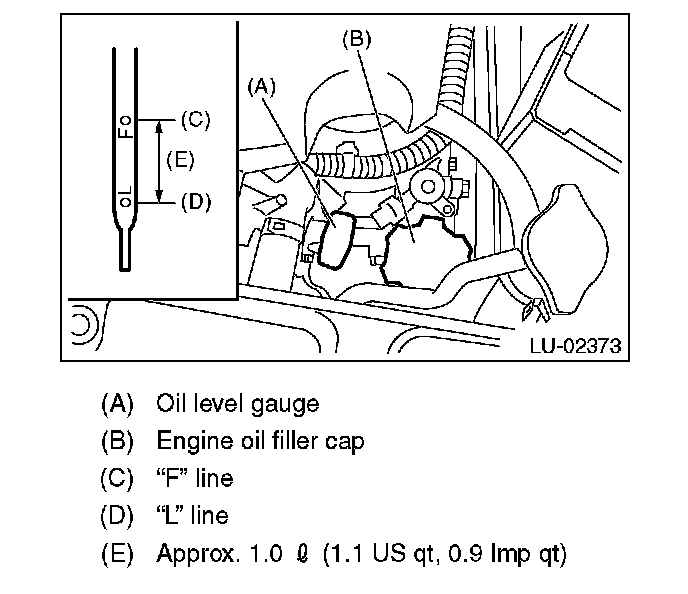 - To prevent overfilling of engine oil, do not add oil above "F" line when the engine is cold.