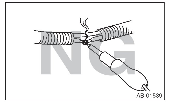 - If damage, open circuit or rust is found on airbag system wiring harness, do not use a soldering equipment to repair. Replace the faulty harness with a new genuine part.