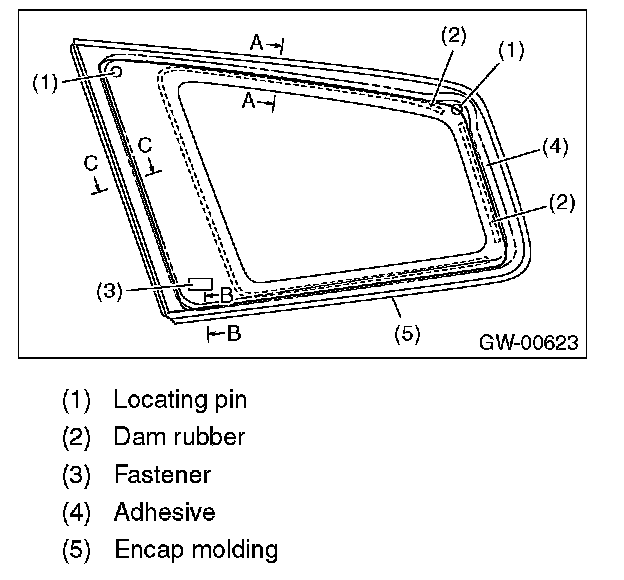 3. Install the glass in the same procedure as for windshield glass.