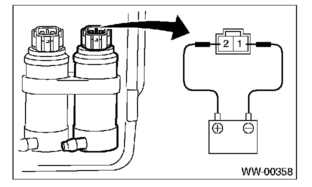 Apply battery voltage to the connector terminal the washer motor and make sure the motor operates.