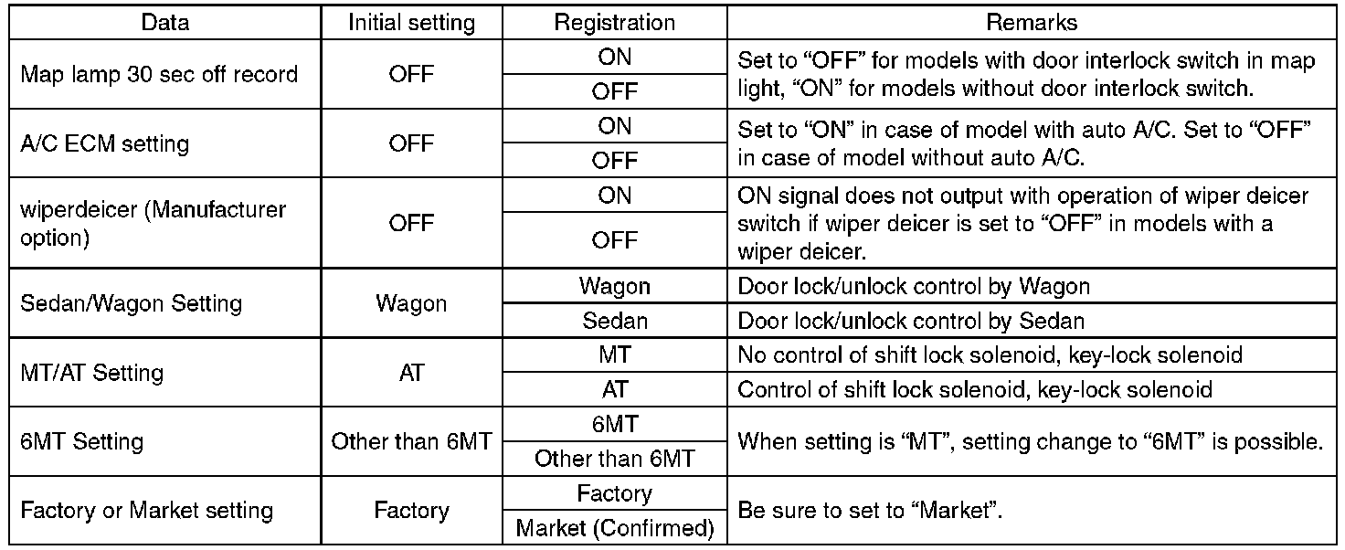 - Confirm key illumination does not blink or "Factory or Market setting" of body integrated unit registrations is "Market". If "Factory or Market setting" is set to "Factory," key illumination blinks when ignition key is turned ON, to notify that the settings are unconfirmed.