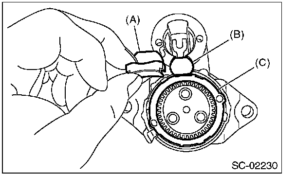 10. Attach the starter cover assembly, and affix to the brush holder assembly with screws (A).