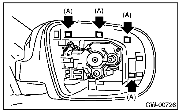 2. Press-in the clips (A) from inside of outer mirror.