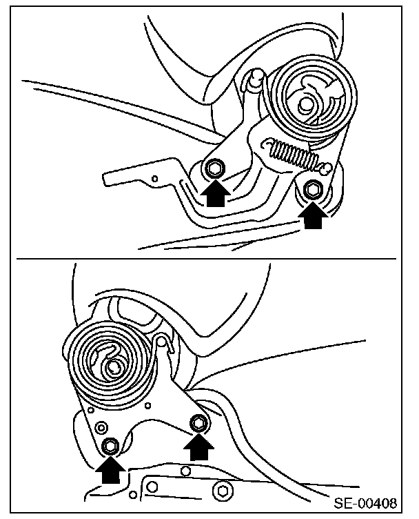 8. Remove the bolts from the right and left reclining hinges.