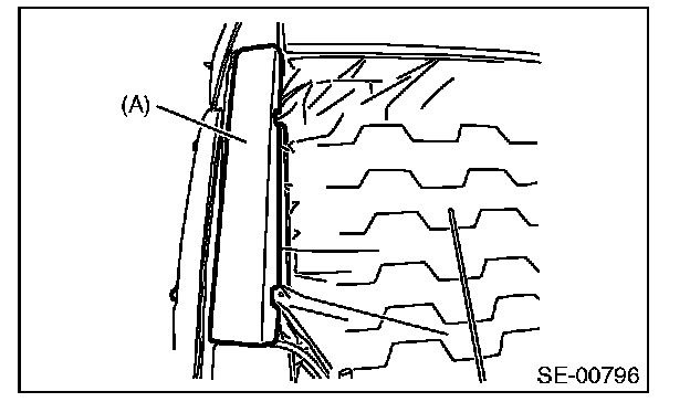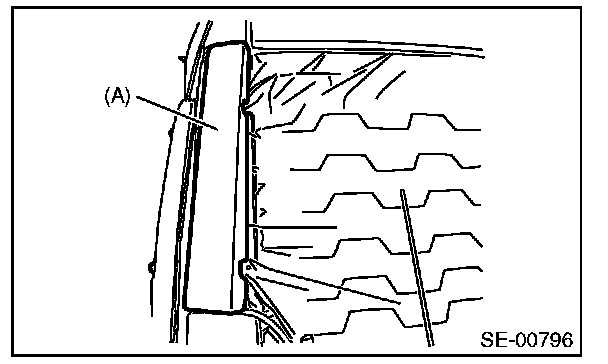 12. Remove the pad (A) and then remove the mounting nuts for side airbag module.