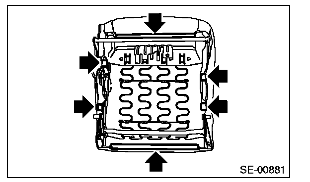 - The passenger detection system (passenger seat only) control unit, passenger detection sensor, seat cushion pad and seat cushion frame are considered as a single seat cushion pad and frame assembly. Never remove the passenger detection control unit or the pressure sensor from the seat cushion frame.