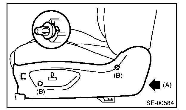 4. Remove screws (A) and clips (B), and then detach the seat side cover outside.