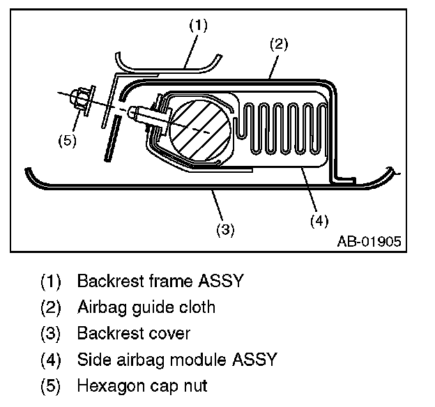 When the backrest cover is not installed securely, the side airbag module may not be deployed properly, therefore keep strictly to the following procedure.