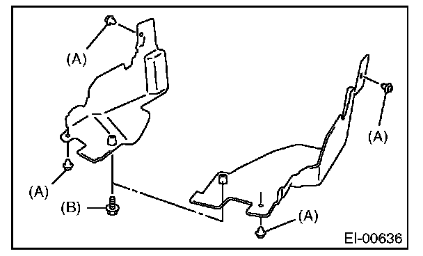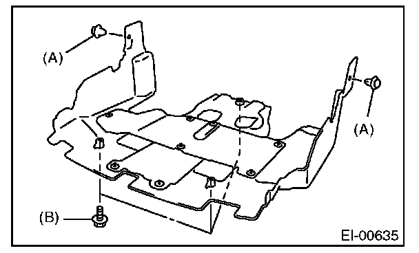 2. Remove clips (A) in front fender and bolts (B), then remove the front under cover.
